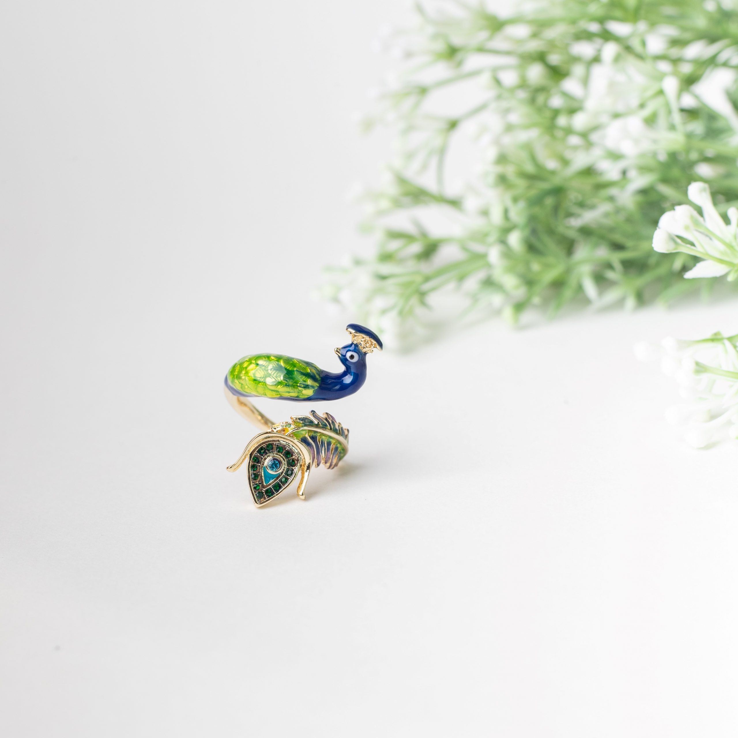Presenting Peacock inspired adjustable Ring, Where elegance meets adaptability, like a peacock’s dance in the wind.